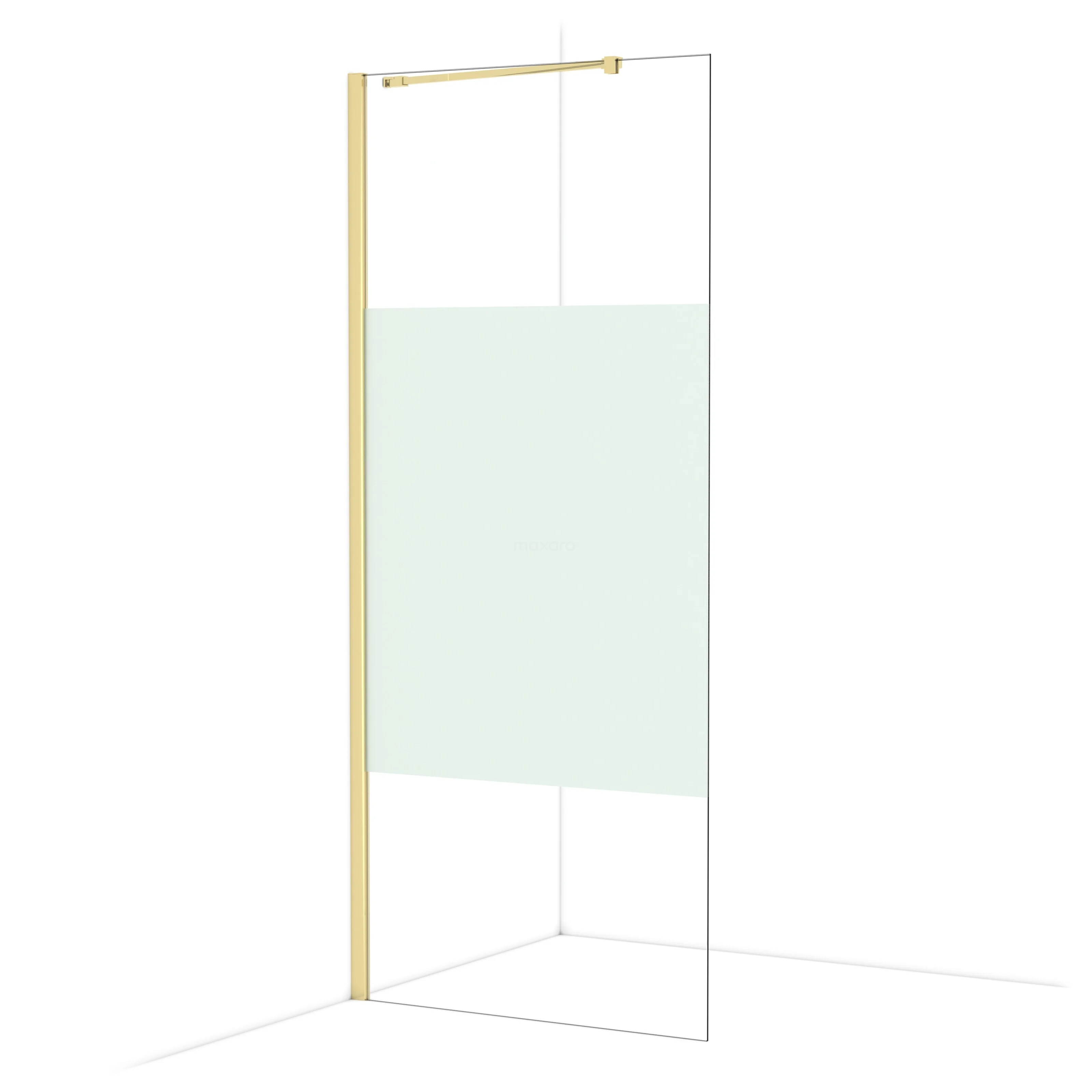 In der stilvollen begehbaren Dusche Diamond mit einer Größe von 90 cm können Sie jeden Tag wunderbare Duschsitzungen genießen. Sie hat ein raffiniertes und luxuriöses Design in glänzendem Hellgold und verfügt über Klarglas mit mattem Streifen für mehr Privatsphäre.