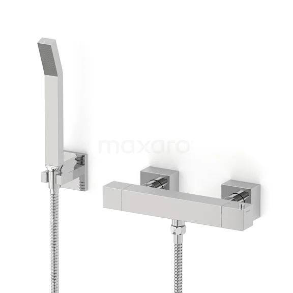 Cubic Aufputz-Brausebatterie-Set | Chrom Mischbatterie mit Handbrause 1 Position