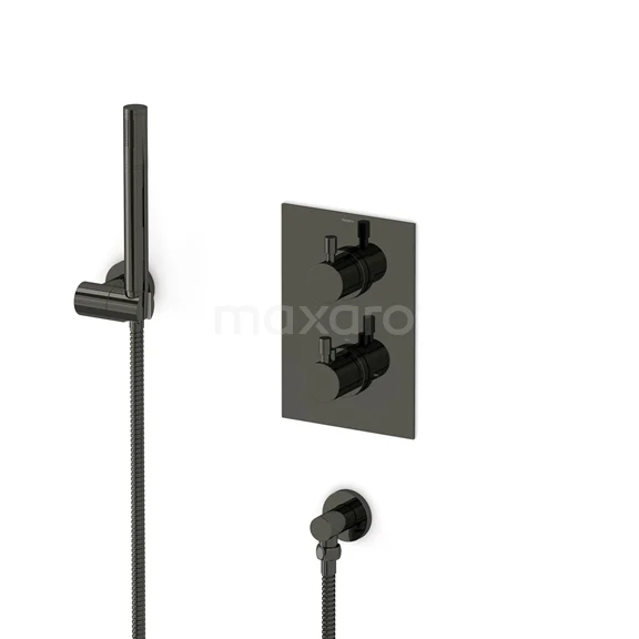 Radius Unterputz-Brausegarnitur | Schwarzchrom Thermostatarmatur mit Handbrause 1 Position