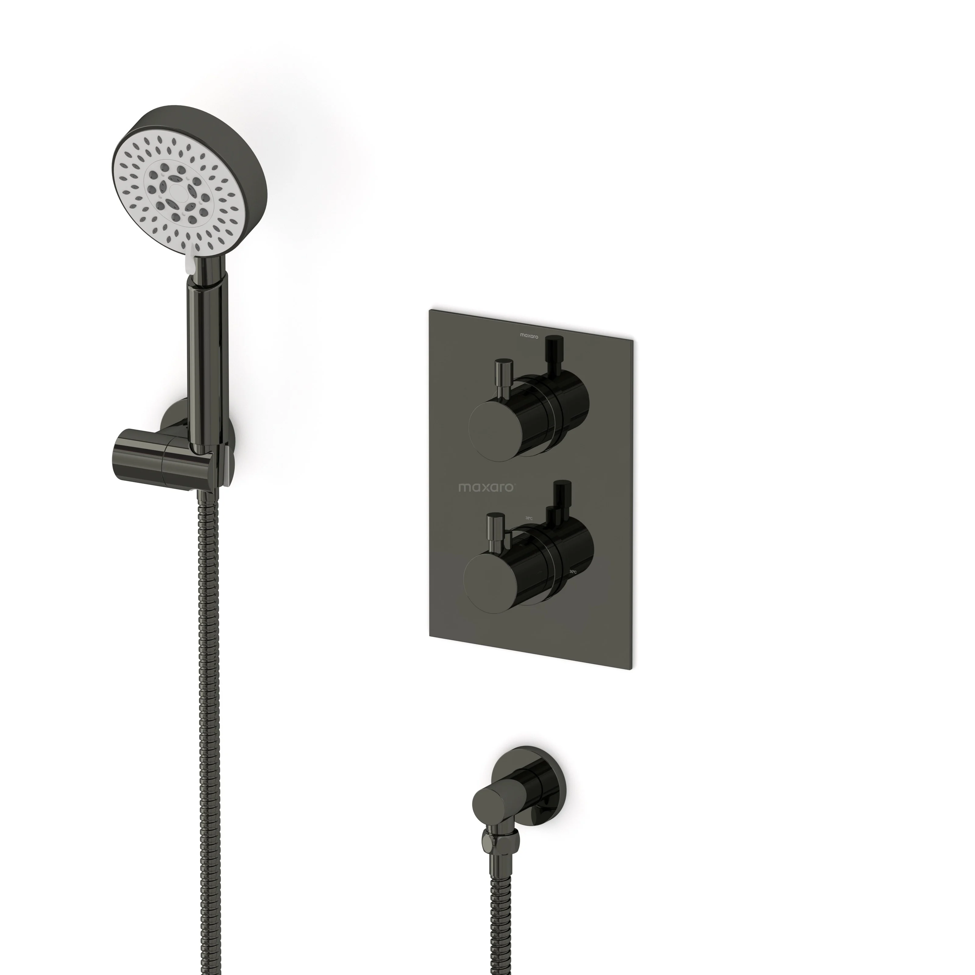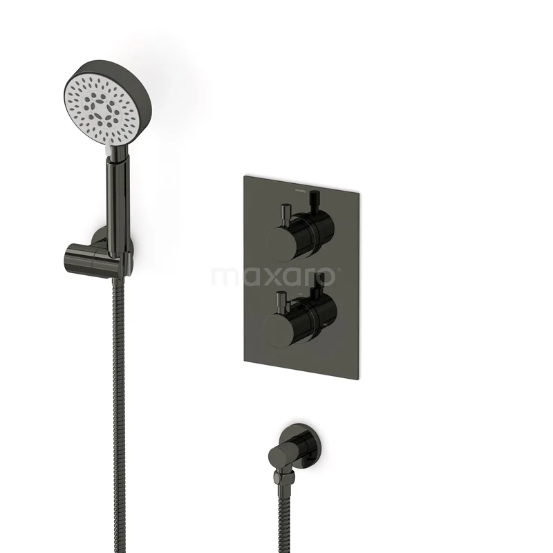 Radius Unterputz-Brausegarnitur | Schwarzchrom Thermostatarmatur mit Handbrause 5 Positionen