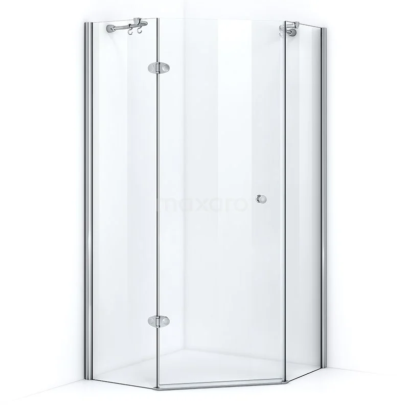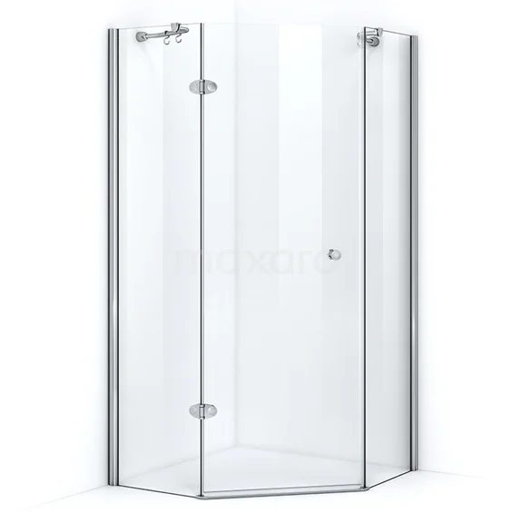 - Fünfeckige Duschkabine mit 1 großen Drehtür und 2 festen Wänden
