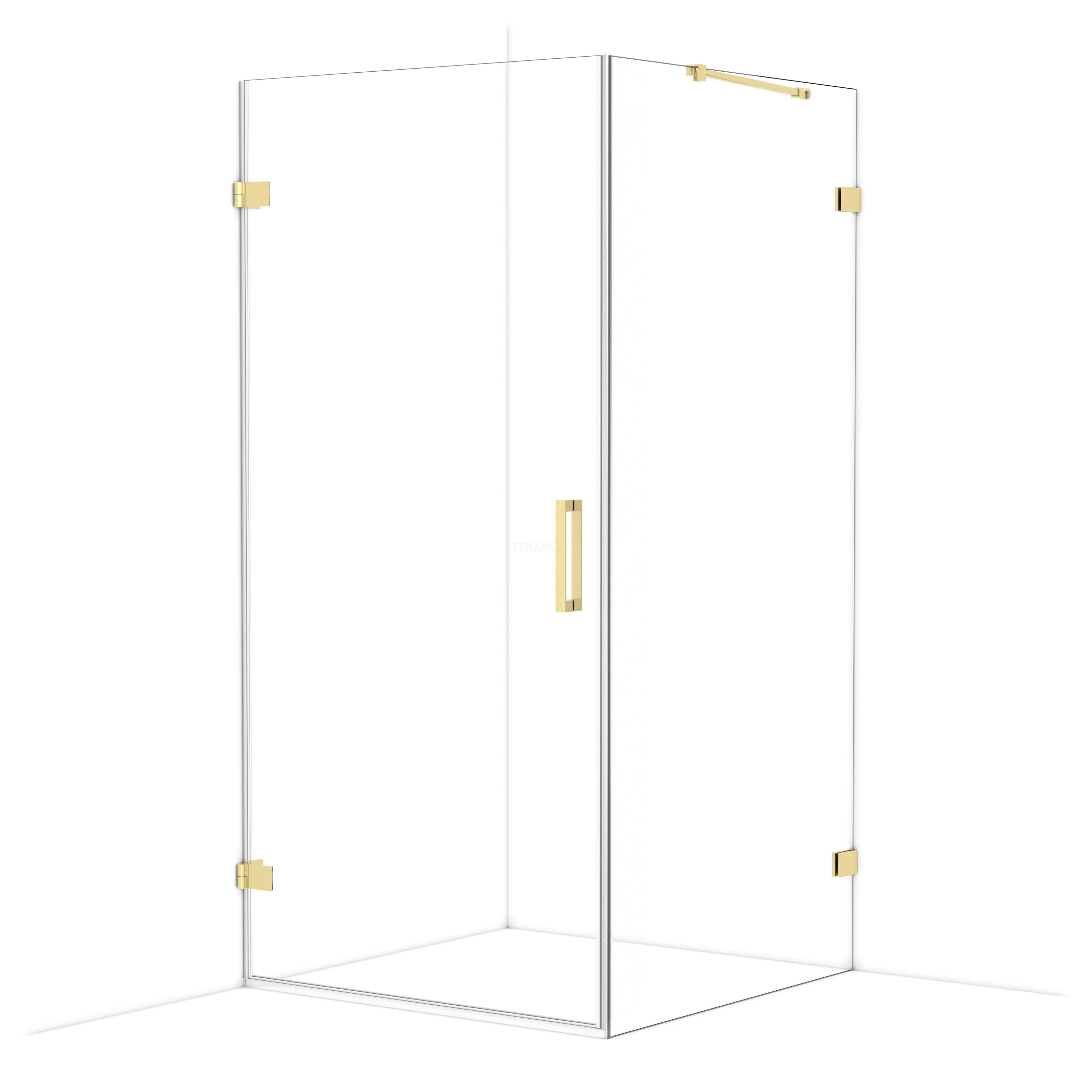 Diamond Duschkabine | 100x100 cm Glänzendes Hellgold Drehtür Quadrat