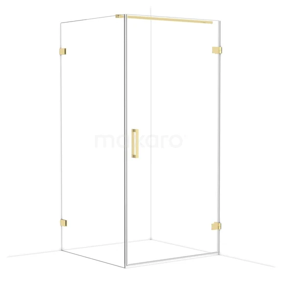 Diamond Duschkabine | 100x100 cm Glänzendes Hellgold Drehtür Quadrat