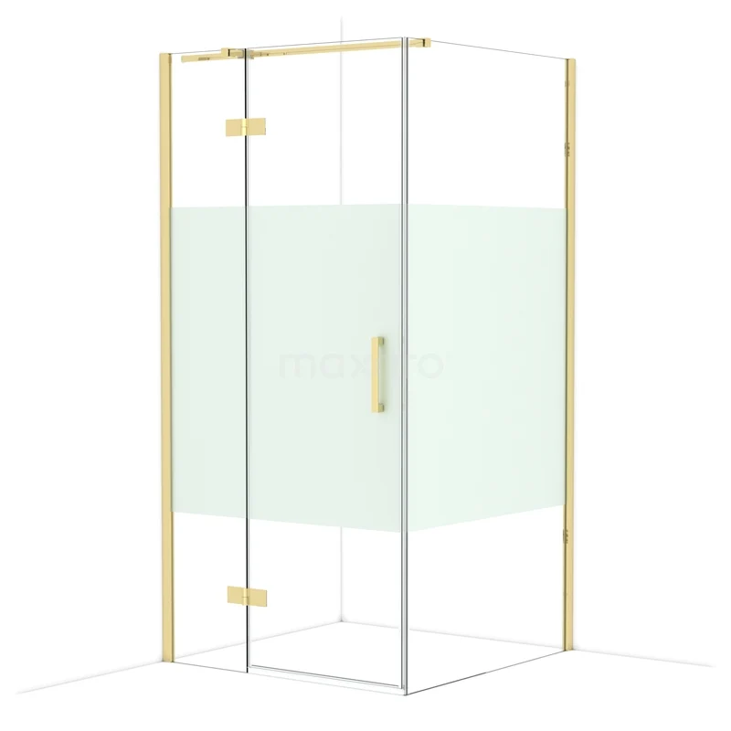Diamond Duschkabine | 100x100 cm Glänzendes Hellgold Drehtür Quadrat