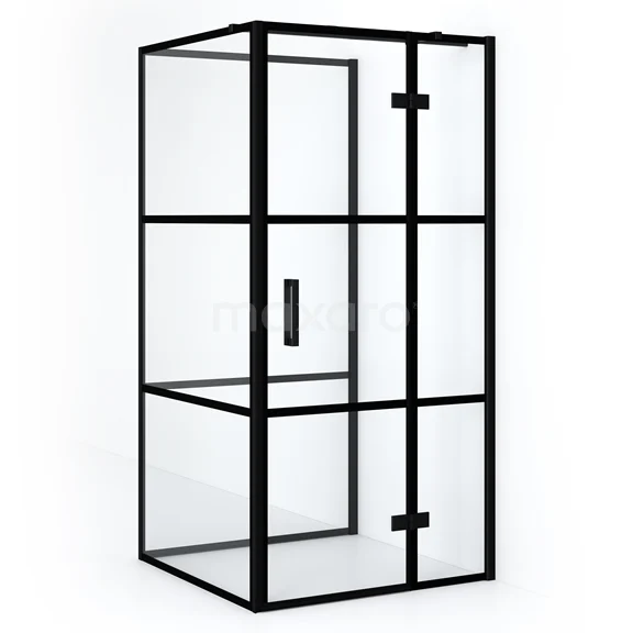 Diamond Duschkabine | 100x100 cm Matt Schwarz Drehtür Halbfreistehendes Quadrat