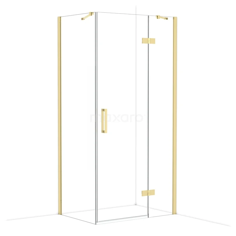 Diamond Duschkabine | 100x70 cm Glänzendes Hellgold Drehtür Rechteck