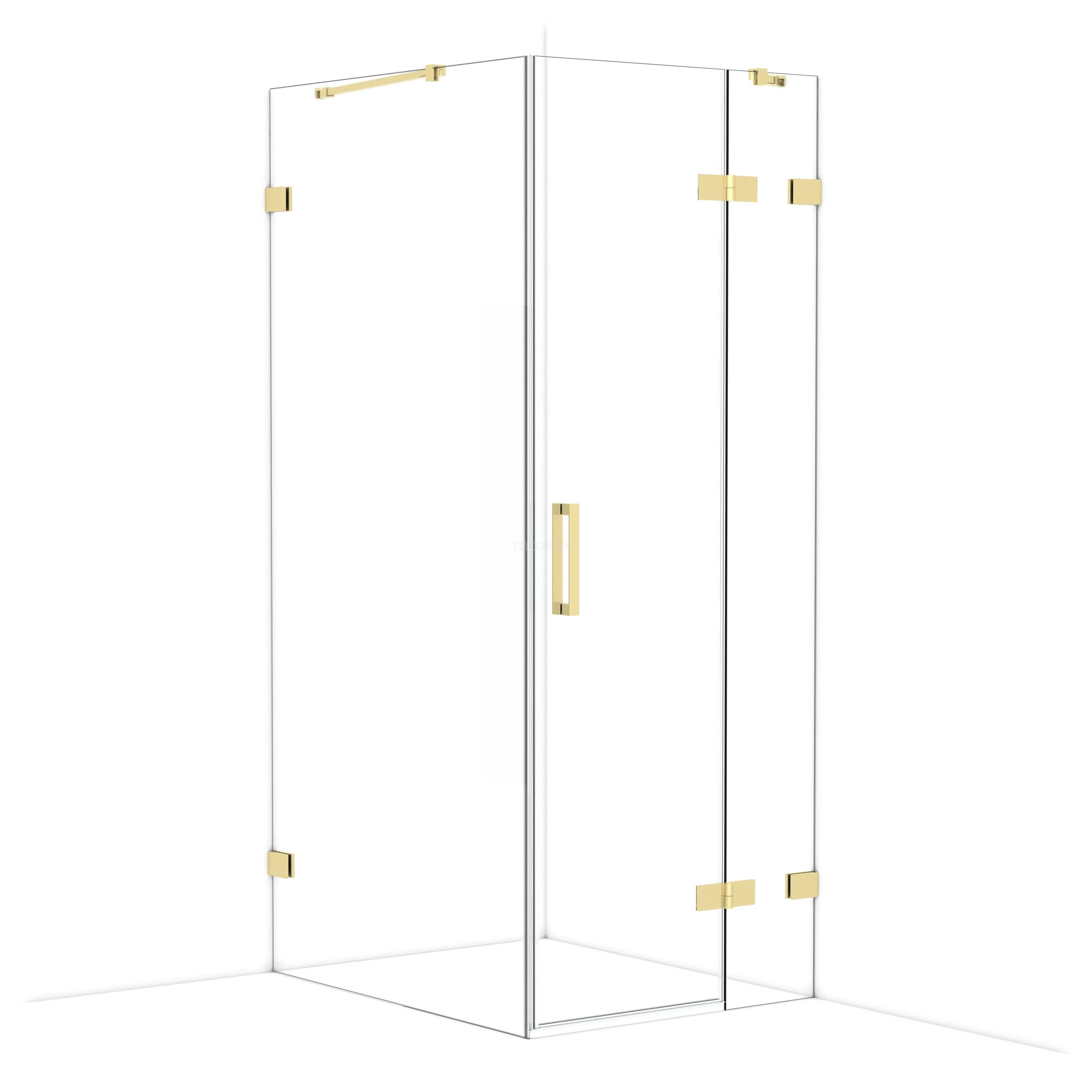 Diamond Duschkabine | 100x80 cm Glänzendes Hellgold Drehtür Rechteck