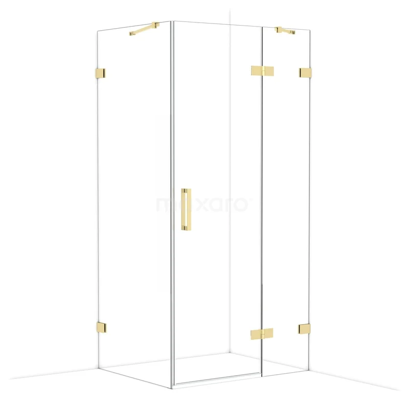 Diamond Duschkabine | 100x80 cm Glänzendes Hellgold Drehtür Rechteck