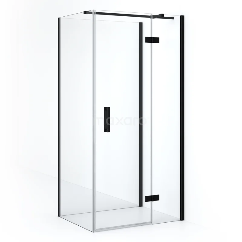 Diamond Duschkabine | 100x80 cm Matt Schwarz Drehtür Halbfreistehendes Rechteck
