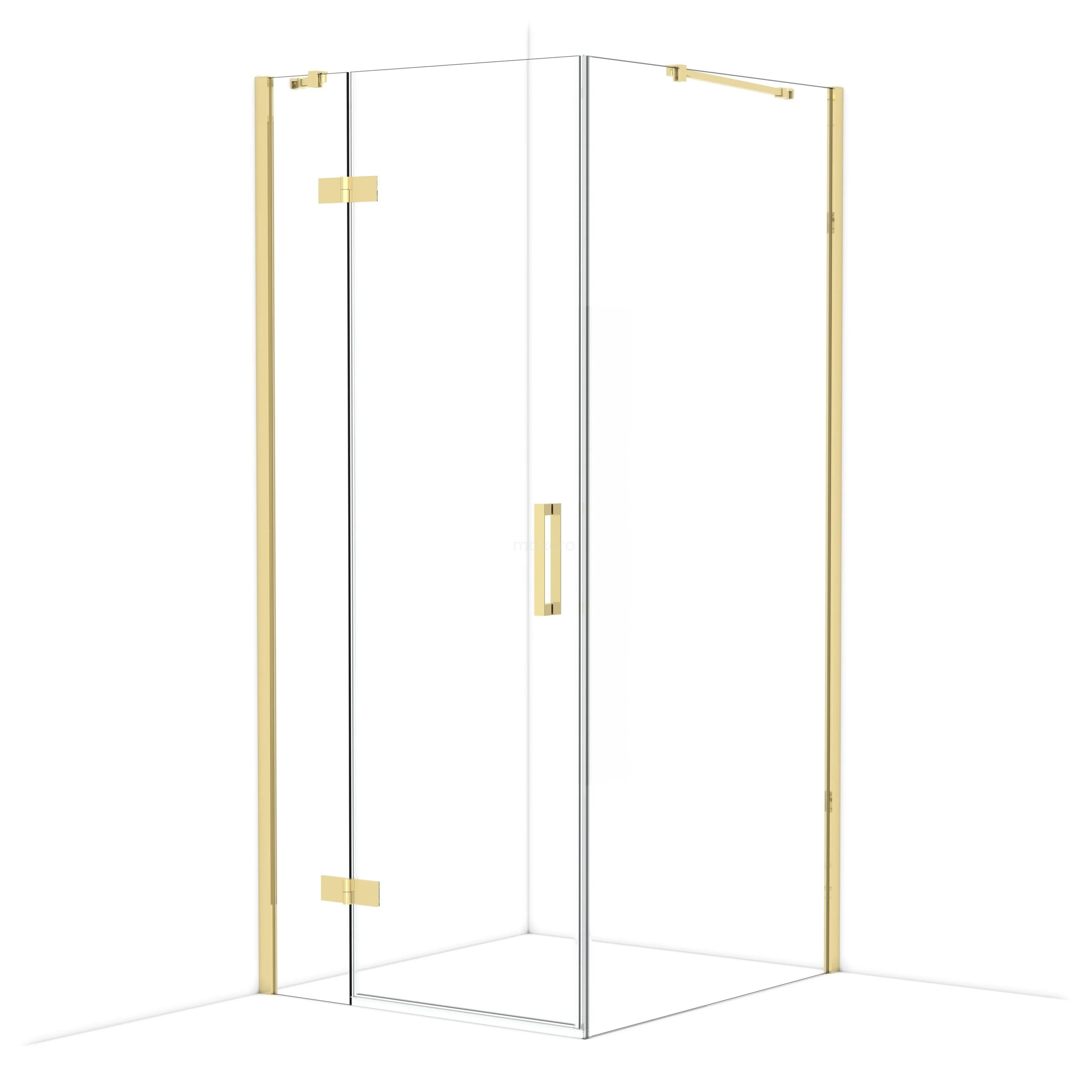 Diamond Duschkabine | 100x90 cm Glänzendes Hellgold Drehtür Rechteck