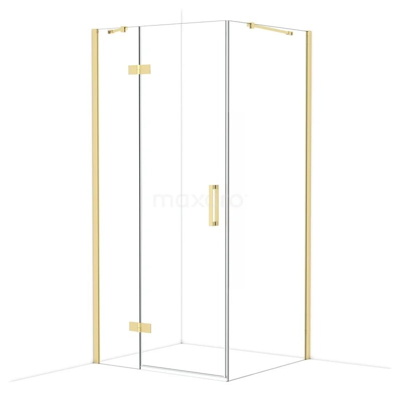 Diamond Duschkabine | 100x90 cm Glänzendes Hellgold Drehtür Rechteck