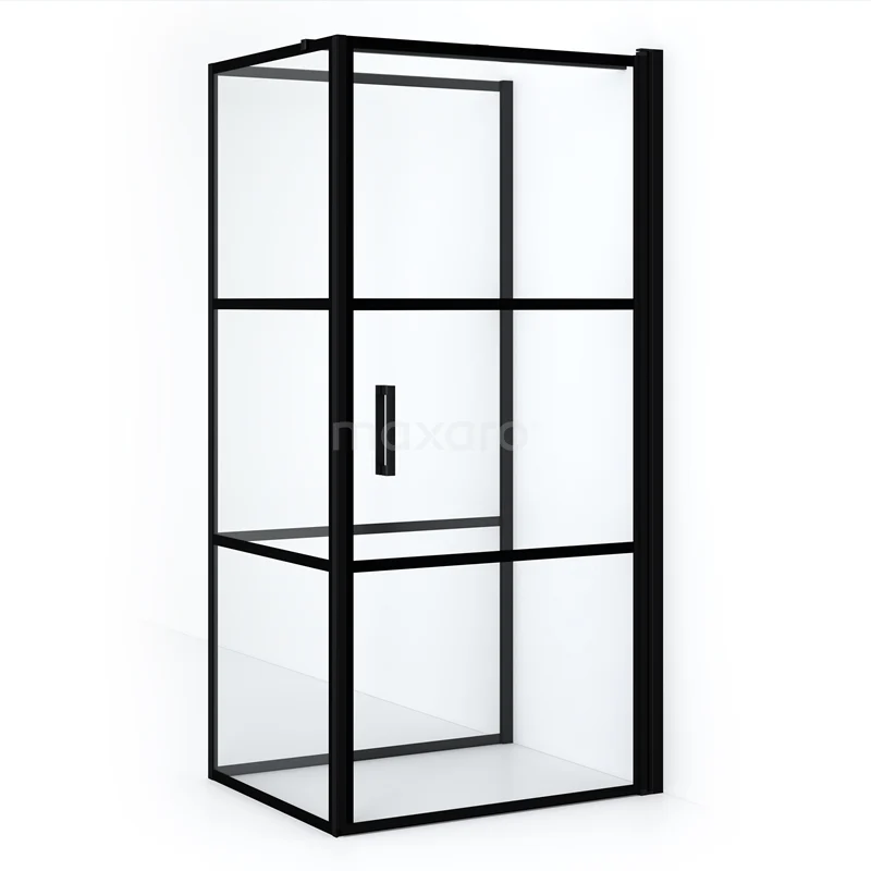 Diamond Duschkabine | 100x90 cm Matt Schwarz Drehtür Halbfreistehendes Rechteck
