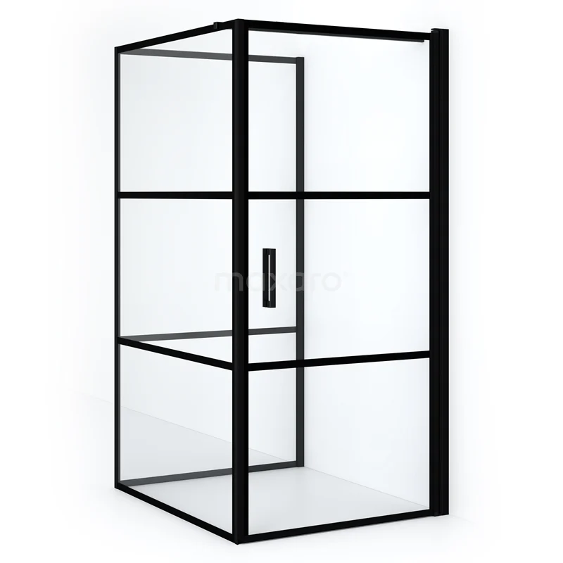 Diamond Duschkabine | 110x100 cm Matt Schwarz Drehtür Halbfreistehendes Rechteck