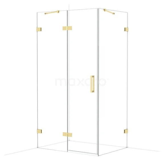 Diamond Duschkabine | 110x80 cm Glänzendes Hellgold Drehtür Rechteck