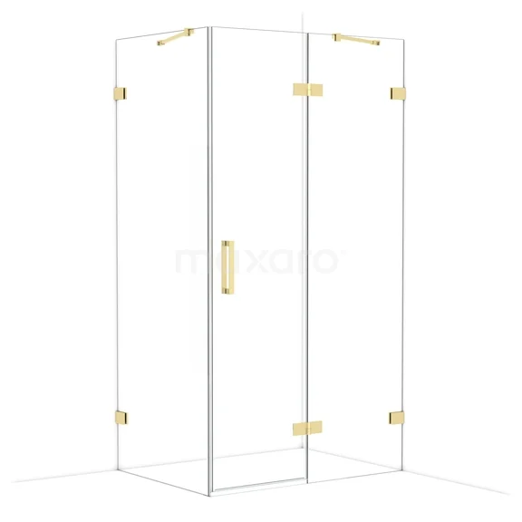 Diamond Duschkabine | 110x80 cm Glänzendes Hellgold Drehtür Rechteck
