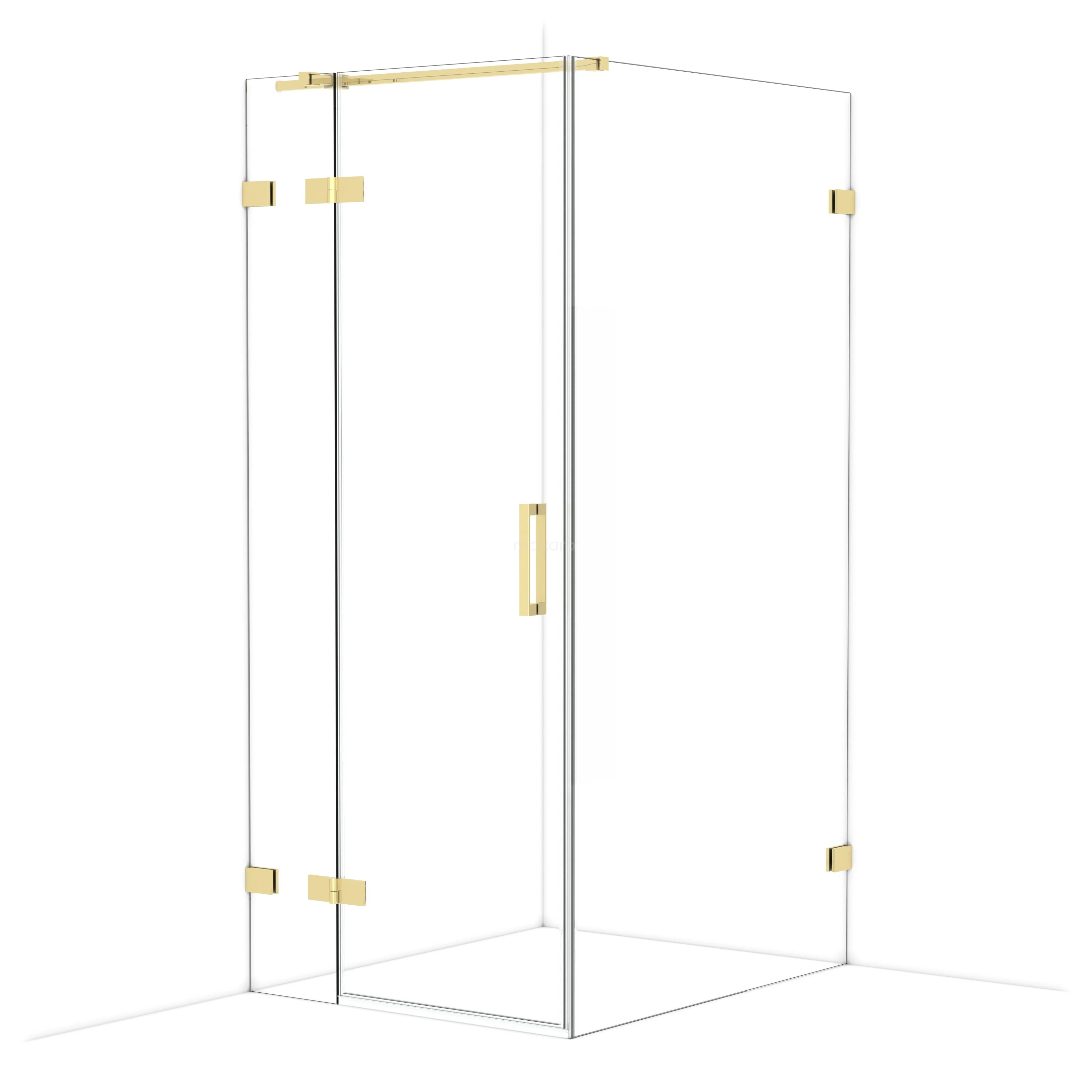 Diamond Duschkabine | 110x90 cm Glänzendes Hellgold Drehtür Rechteck