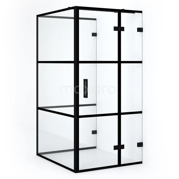 In der stilvollen, halb freistehenden Duschkabine Diamond mit den Maßen 120x100 cm können Sie jeden Tag herrliche Duschsitzungen genießen. Diese rechteckige Kabine zeichnet sich durch eine Zwei-Punkt-Befestigung und den vertikalen Griff aus. Sie hat eine robuste, mattschwarze Oberfläche und Klarglas mit schwarzen Streifen für einen industriellen Touch. Die Dusche ist verstellbar und lässt sich daher leicht montieren. Die Türseite und die parallele feste Wand sind von 98,0 bis 98,3 cm verstellbar. Die schräge feste Wand hat eine feste Größe von 119,1 cm.