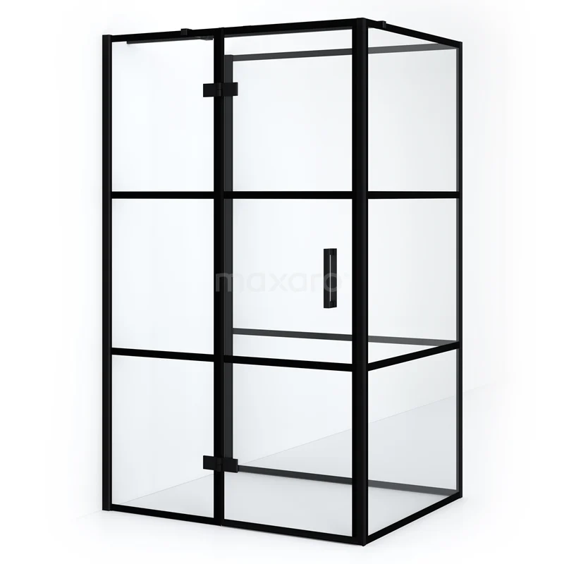 Diamond Duschkabine | 120x100 cm Matt Schwarz Drehtür Halbfreistehendes Rechteck