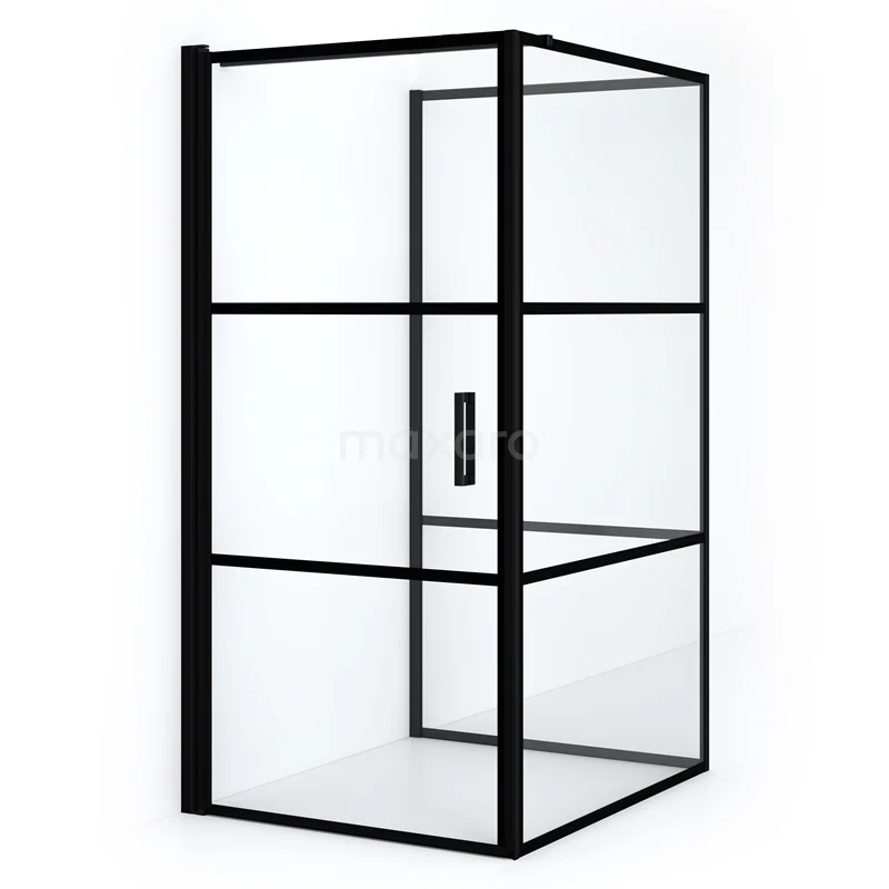 Diamond Duschkabine | 120x100 cm Matt Schwarz Drehtür Halbfreistehendes Rechteck