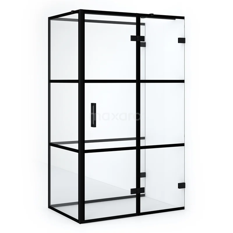 In der stilvollen, halb freistehenden Duschkabine Diamond mit den Maßen 120x80 cm können Sie jeden Tag herrliche Duschsitzungen genießen. Diese rechteckige Kabine zeichnet sich durch eine Zwei-Punkt-Befestigung und den vertikalen Griff aus. Sie hat eine robuste, mattschwarze Oberfläche und Klarglas mit schwarzen Streifen für einen industriellen Touch. Die Dusche ist verstellbar und lässt sich daher leicht montieren. Die Türseite und die parallele feste Wand sind von 118,0 bis 118,3 cm verstellbar. Die schräge feste Wand hat eine feste Größe von 79,1 cm.