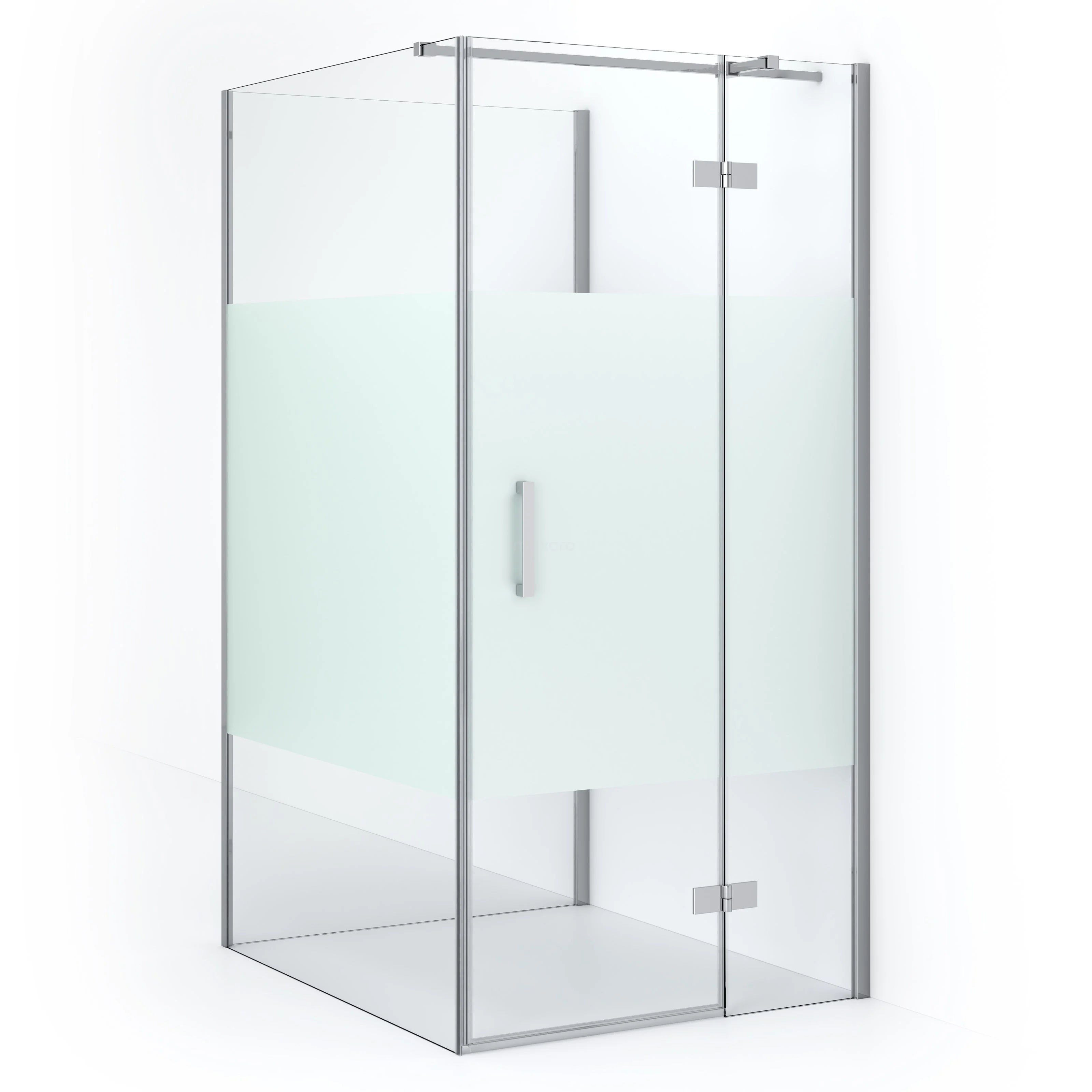 In der stilvollen, halb freistehenden Duschkabine Diamond mit den Maßen 120x90 cm können Sie jeden Tag herrliche Duschsitzungen genießen. Diese rechteckige Kabine zeichnet sich durch ein Wandprofil und den vertikalen Griff aus. Sie hat eine zeitlose, verchromte Oberfläche und Klarglas mit einem matten Streifen für mehr Privatsphäre. Die Dusche ist verstellbar und lässt sich daher leicht montieren. Die Türseite und die parallele feste Wand sind von 88,1 bis 89,6 cm verstellbar. Die schräge feste Wand hat eine feste Größe von 120,6 cm.