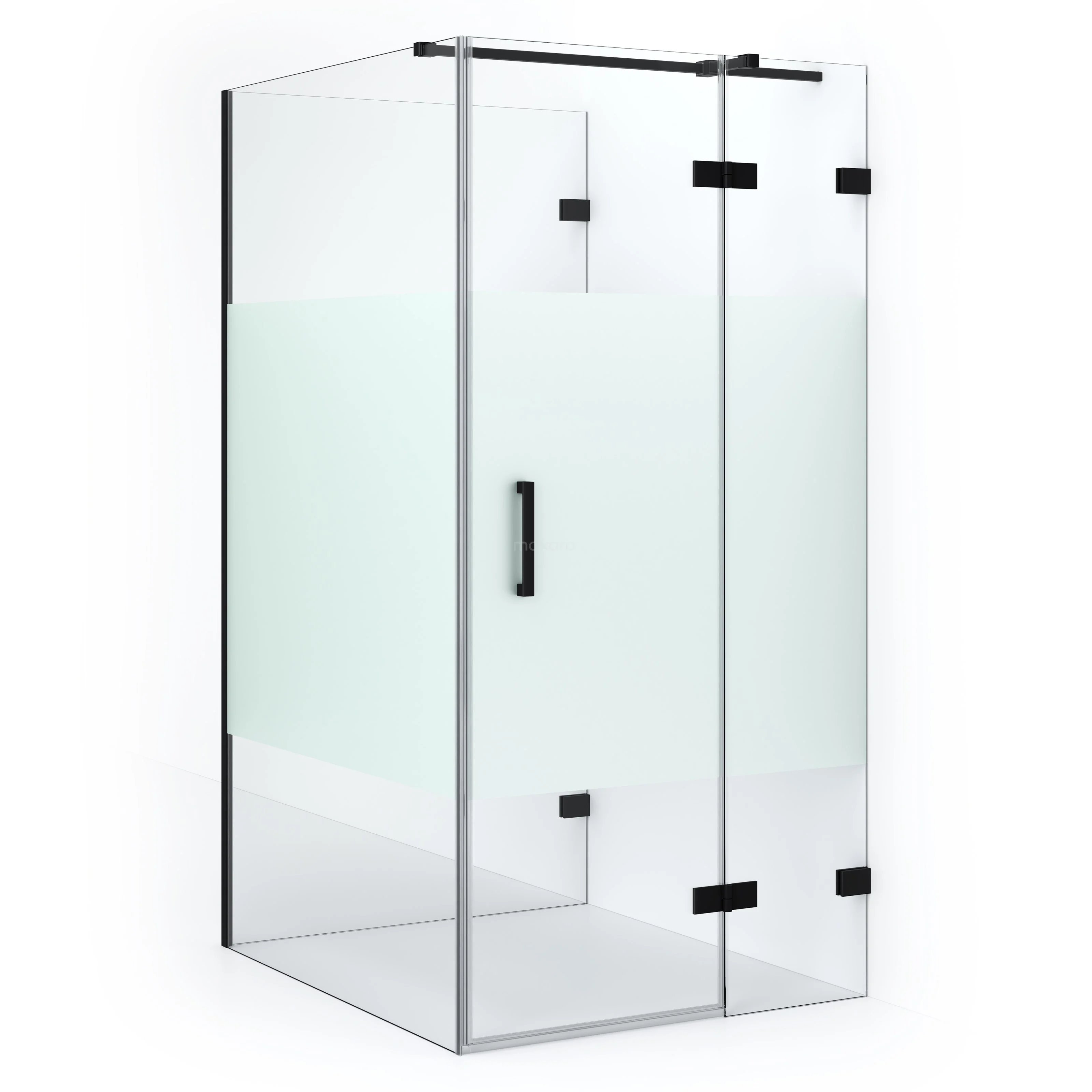 Diamond Duschkabine | 120x90 cm Matt Schwarz Drehtür Halbfreistehendes Rechteck