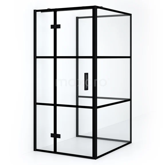 Diamond Duschkabine | 120x90 cm Matt Schwarz Drehtür Halbfreistehendes Rechteck