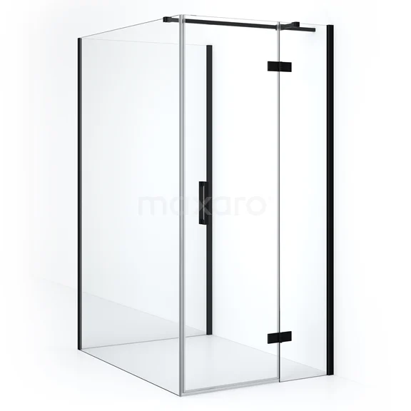 Diamond Duschkabine | 130x90 cm Matt Schwarz Drehtür Halbfreistehendes Rechteck
