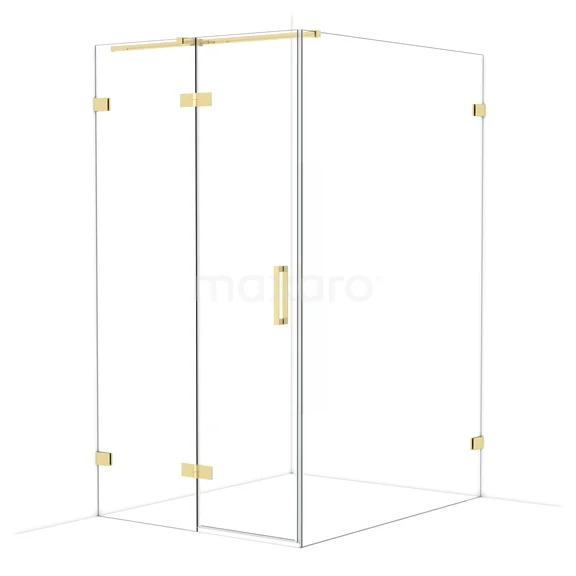 Diamond Duschkabine | 140x110 cm Glänzendes Hellgold Drehtür Rechteck