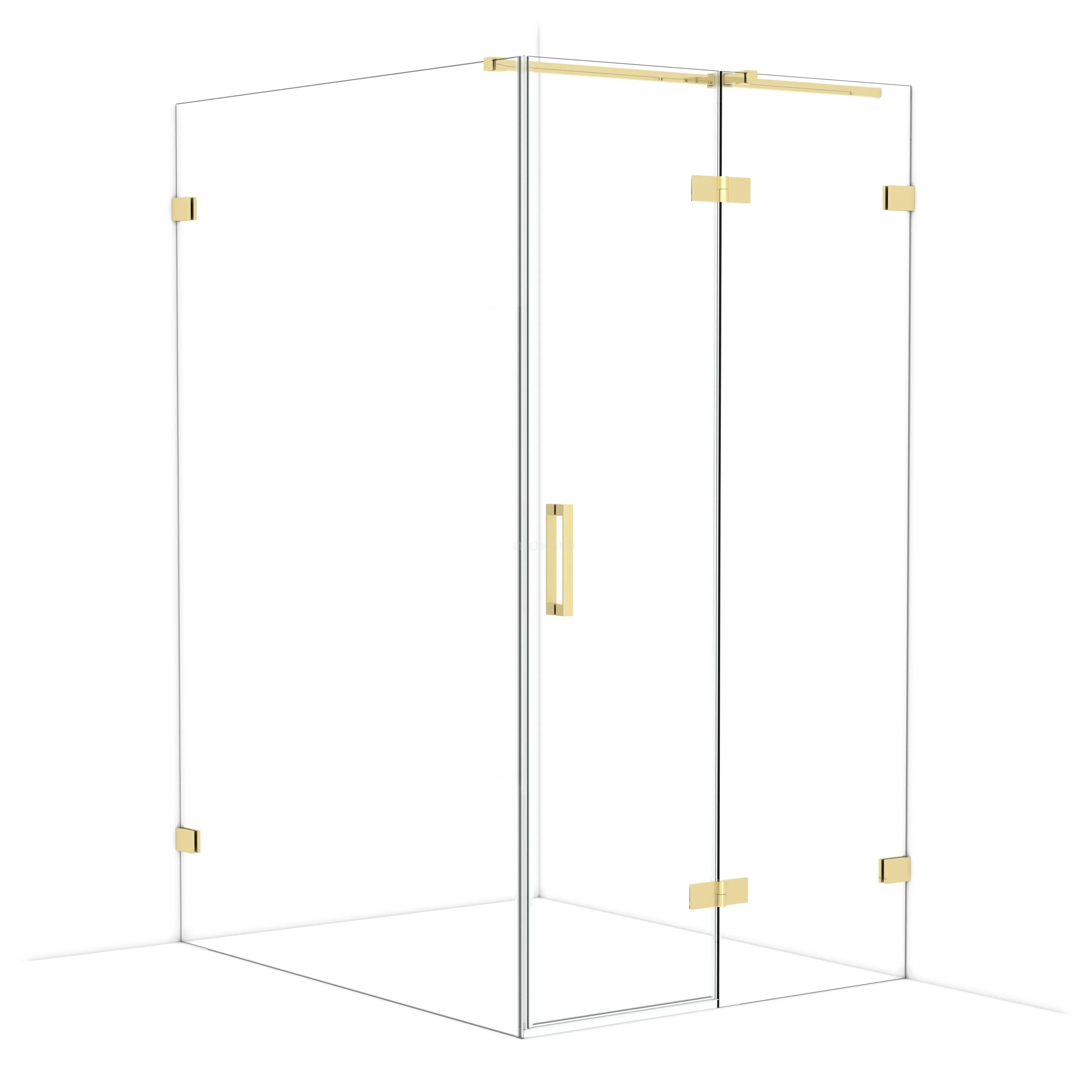 Diamond Duschkabine | 140x110 cm Glänzendes Hellgold Drehtür Rechteck