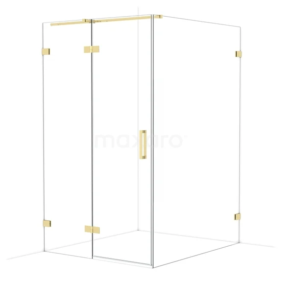 Diamond Duschkabine | 140x120 cm Glänzendes Hellgold Drehtür Rechteck