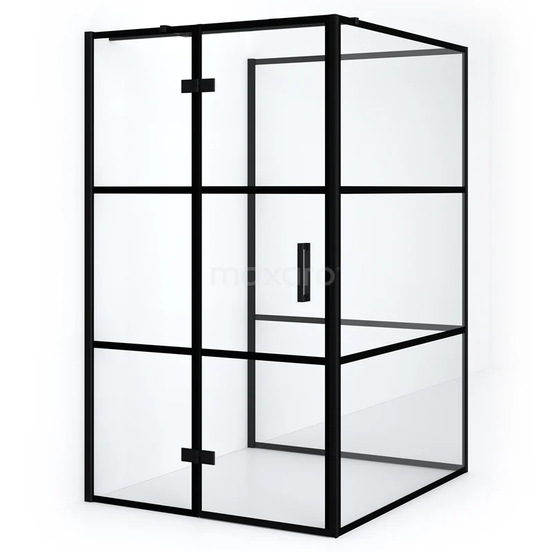 Diamond Duschkabine | 140x120 cm Matt Schwarz Drehtür Halbfreistehendes Rechteck