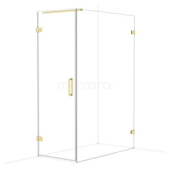 Diamond Duschkabine | 140x70 cm Glänzendes Hellgold Drehtür Rechteck