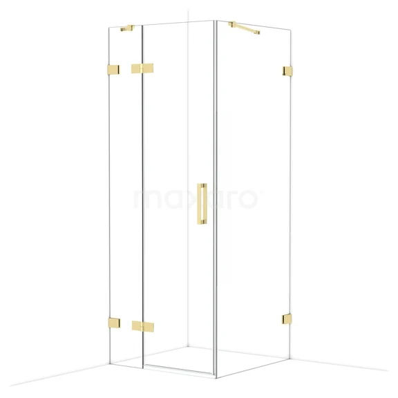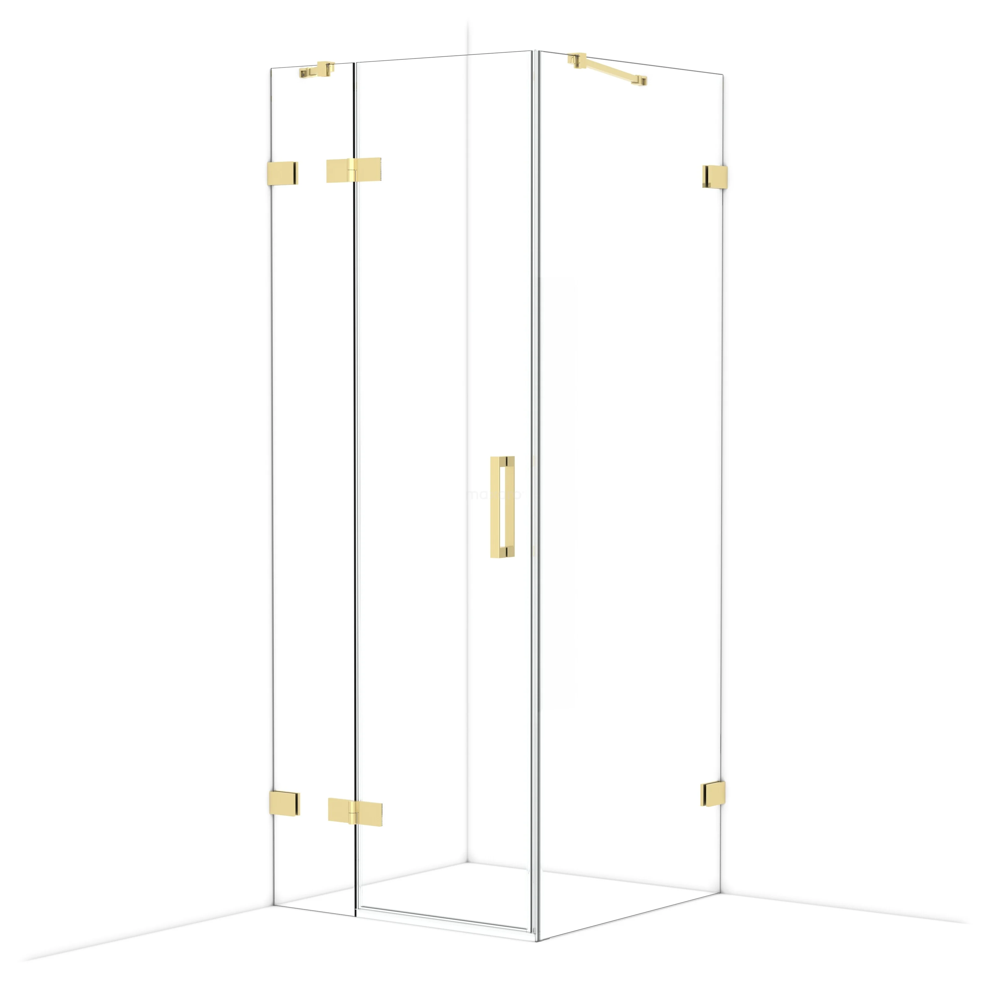 Diamond Duschkabine | 80x80 cm Glänzendes Hellgold Drehtür Quadrat