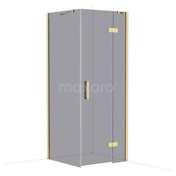 Diamond Duschkabine | 80x80 cm Glänzendes Hellgold Drehtür Quadrat