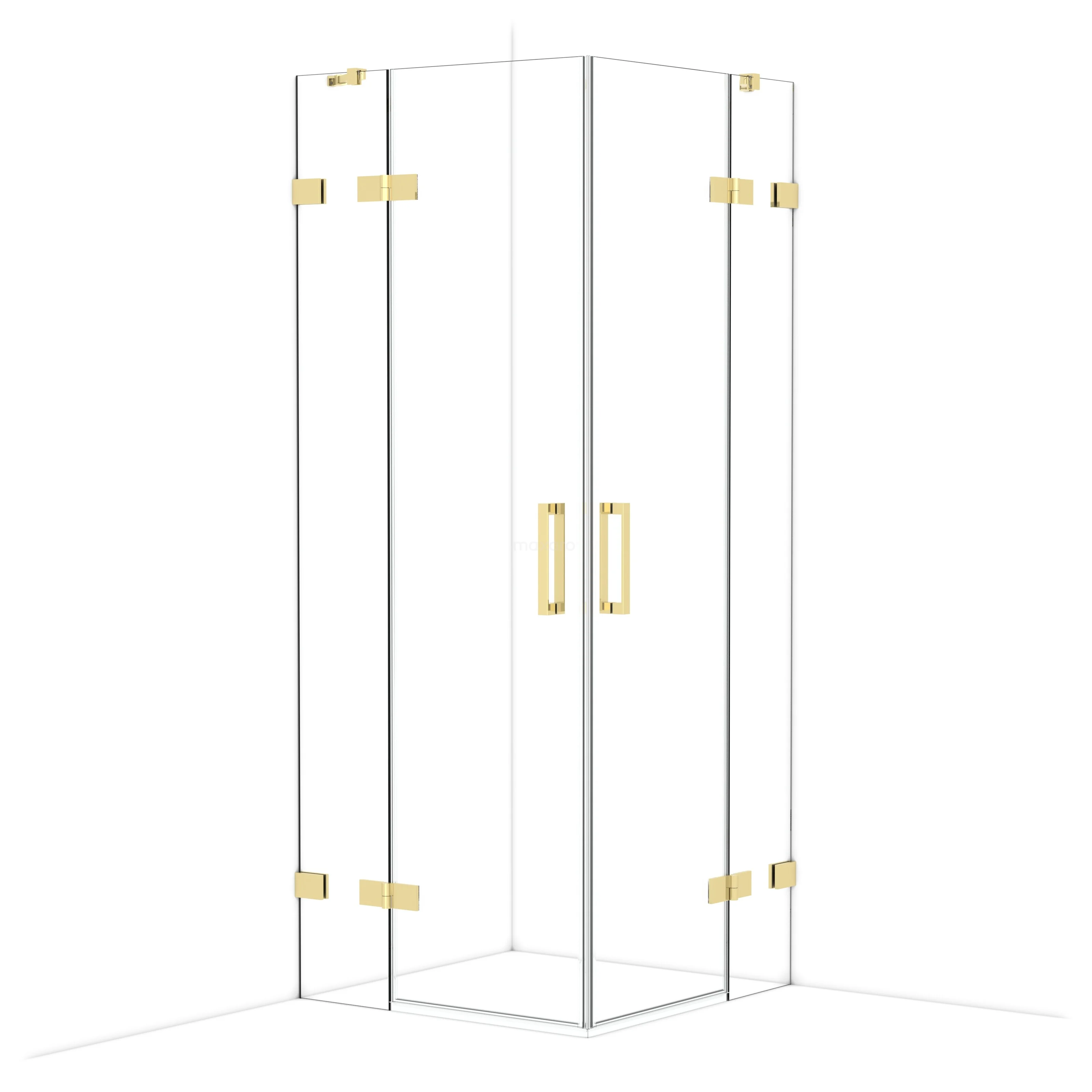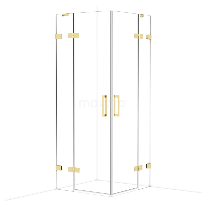 Diamond Duschkabine | 80x80 cm Glänzendes Hellgold Drehtür Quadrat