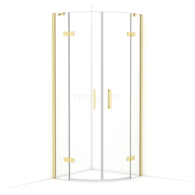 Diamond Duschkabine | 80x80 cm Glänzendes Hellgold Drehtür Viertelrunde