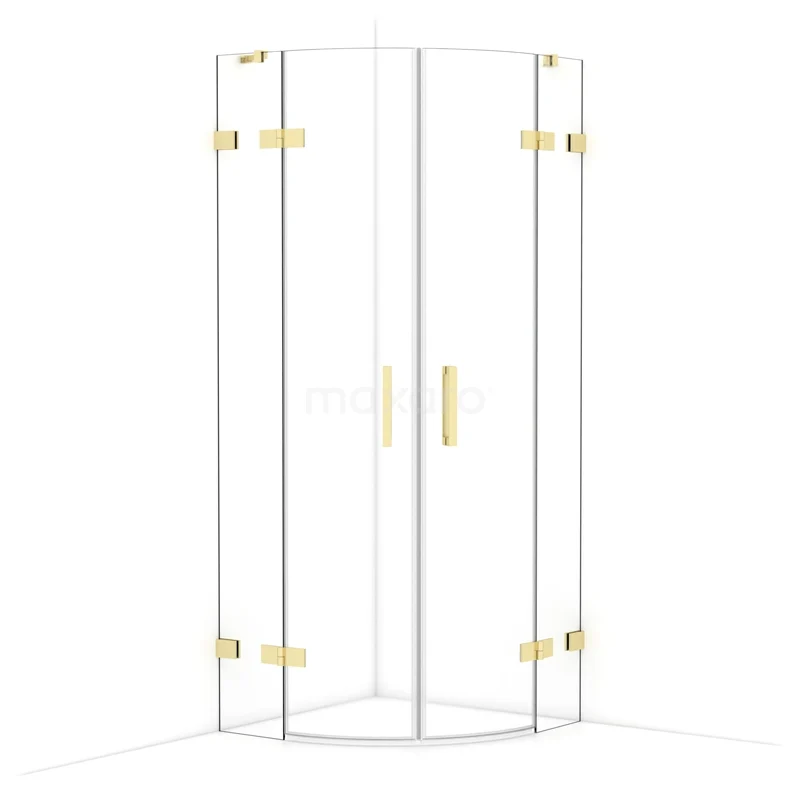 Diamond Duschkabine | 80x80 cm Glänzendes Hellgold Drehtür Viertelrunde