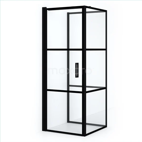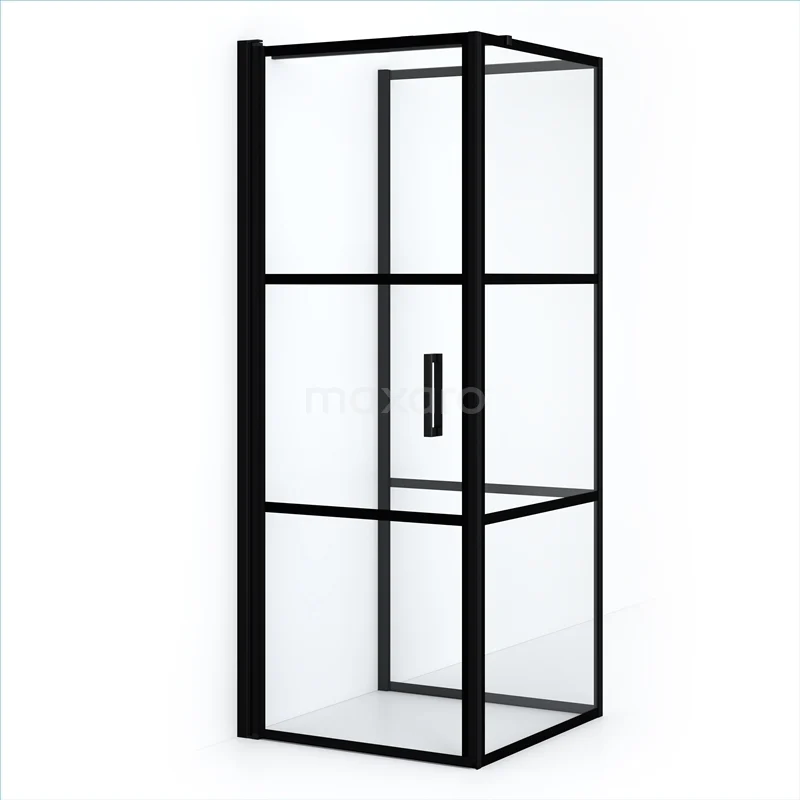 Diamond Duschkabine | 80x80 cm Matt Schwarz Drehtür Halbfreistehendes Quadrat