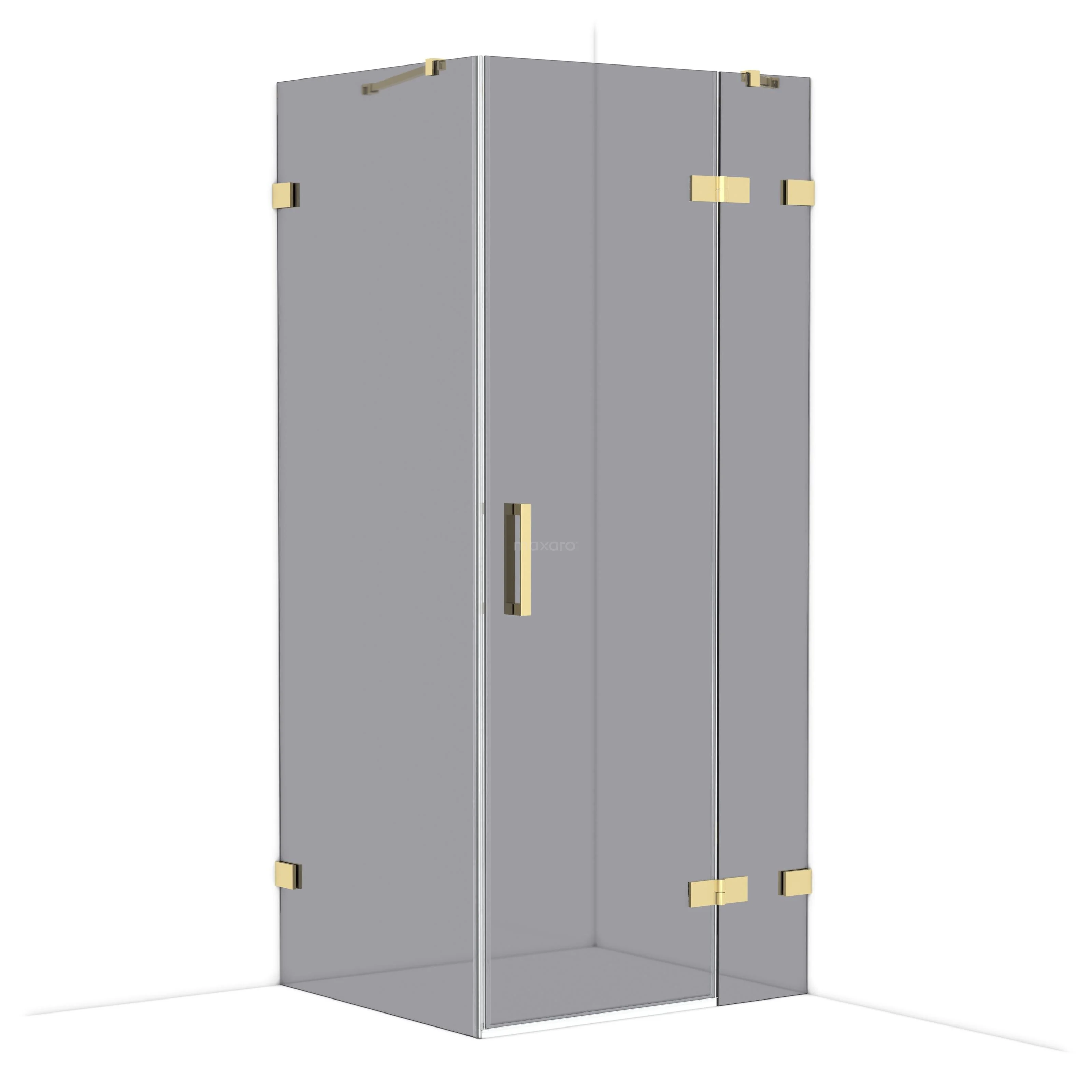 Diamond Duschkabine | 90x80 cm Glänzendes Hellgold Drehtür Rechteck