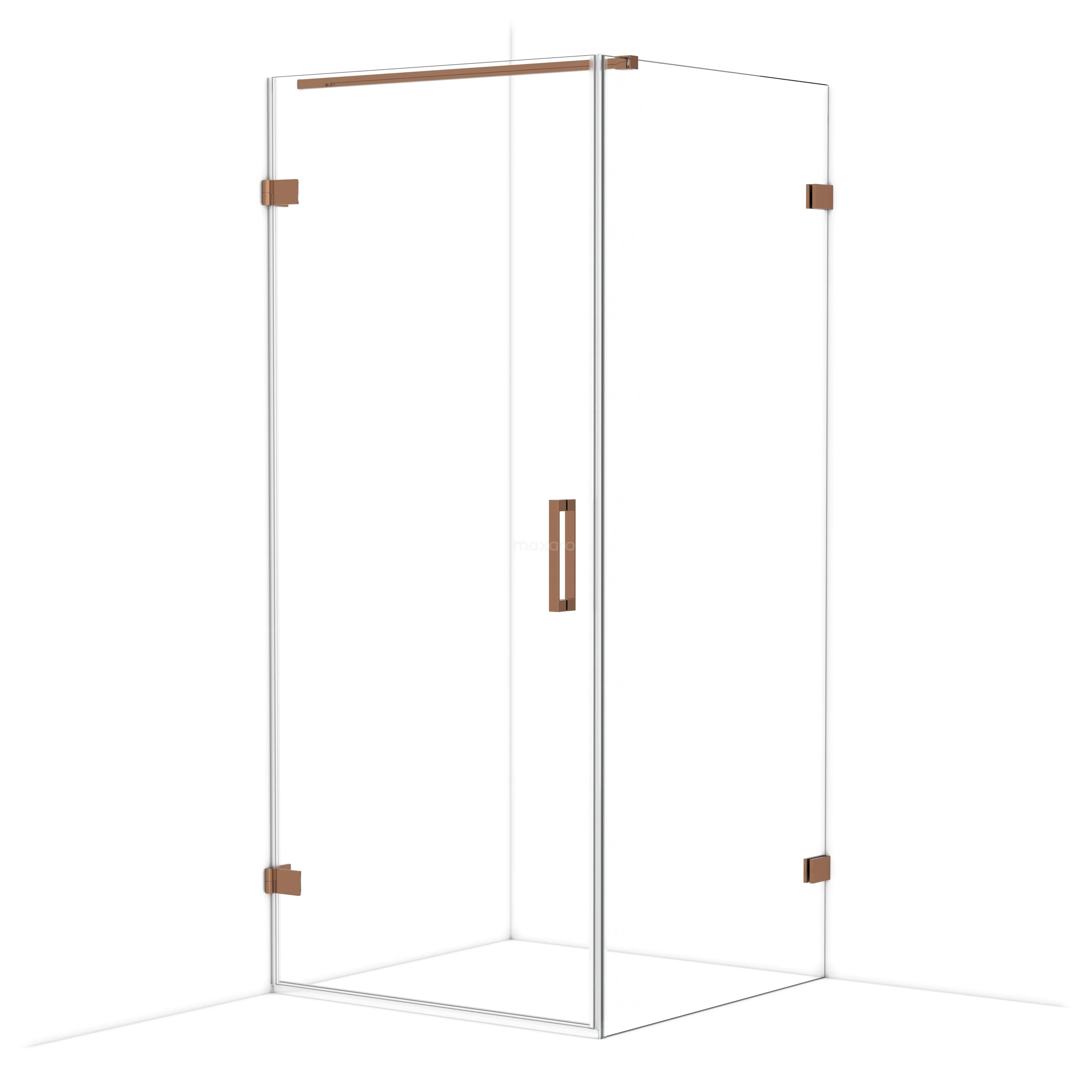 In der stilvollen Duschkabine Diamond mit den Maßen 90x90 cm genießen Sie jeden Tag ein herrliches Duschvergnügen. Diese quadratische Kabine zeichnet sich durch einen zweiflügeligen Aufsatz und den vertikalen Griff aus. Sie hat ein auffälliges Design aus glänzendem Kupfer und verfügt über Klarglas für ein großzügiges Raumgefühl. Die Türseite hat eine absolute Größe von 88,1 cm. Die feste Wand ist verstellbar, so dass sie leicht zu montieren ist.
