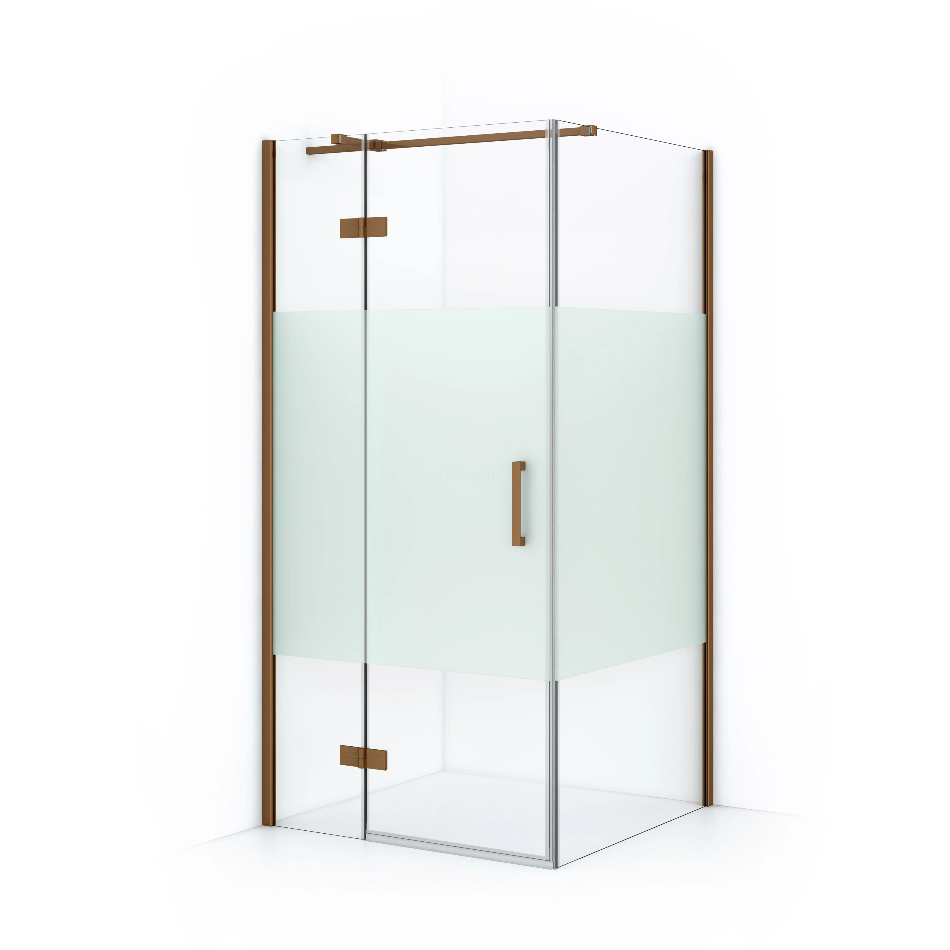 In der stilvollen Duschkabine Diamond genießen Sie jeden Tag ein herrliches Duschvergnügen. Diese quadratische Kabine zeichnet sich durch hochwertige Scharniere und den vertikalen Griff aus. Sie hat eine trendige Oberfläche in Kupfer und Klarglas mit einem matten Streifen für mehr Privatsphäre. Die Dusche ist verstellbar und lässt sich daher leicht montieren. Die feste Wand ist von 89,2 bis 90,7 cm verstellbar und die Wand mit Tür von 88,7 bis 90,2 cm.