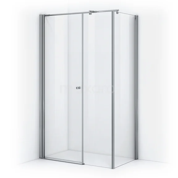 - Rechteckige Duschkabine, ausgestattet mit 1 festen Wand + 1 Seitenwand und 1 großen Schiebetür