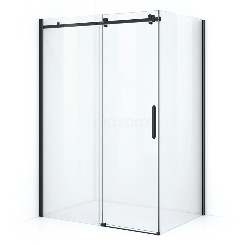 Duschkabine Crystal Allure 130x100cm aus klarem Sicherheitsglas mit Schiebetür Vierkant-Rollensystem Matt Schwarz