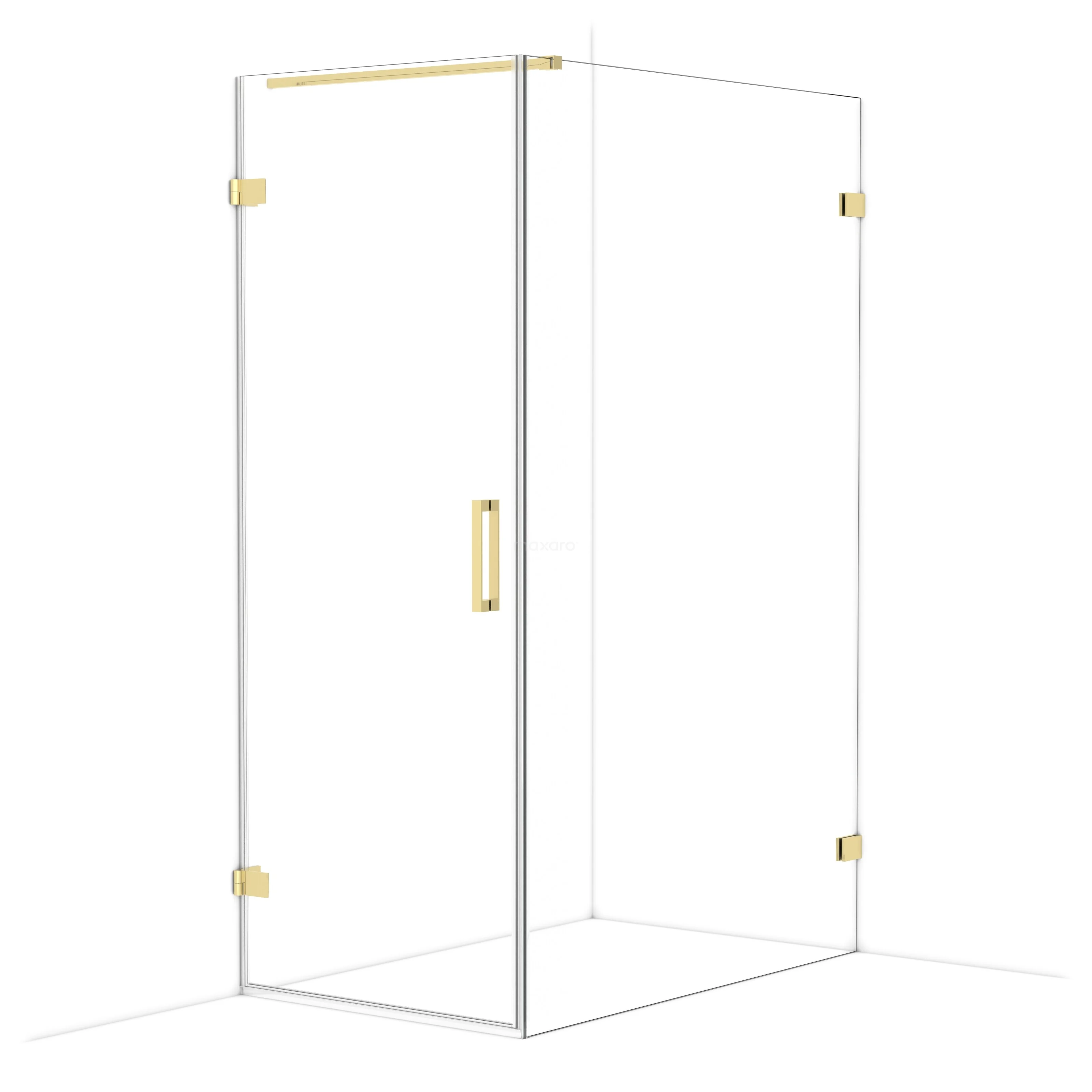 In der stilvollen Duschkabine Diamond mit den Maßen 130x80 cm genießen Sie jeden Tag ein herrliches Duschvergnügen. Diese rechteckige Kabine zeichnet sich durch einen zweiflügeligen Aufsatz und den vertikalen Griff aus. Sie hat ein raffiniertes und luxuriöses Design in glänzendem Hellgold und verfügt über Klarglas für ein großzügiges Gefühl. Die Türseite hat eine absolute Größe von 78,1 cm. Die feste Wand ist verstellbar, so dass sie leicht zu montieren ist.