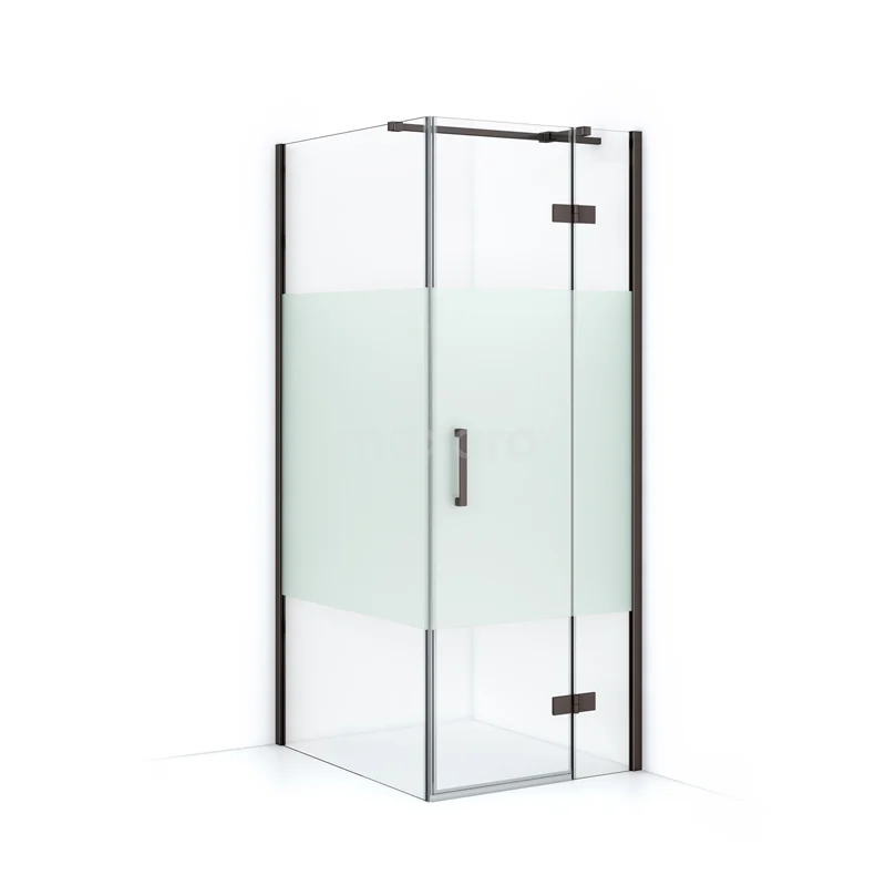 Duschkabine Diamond 90x80cm aus klarem Sicherheitsglas mit mattem Streifen aus schwarzem Metall