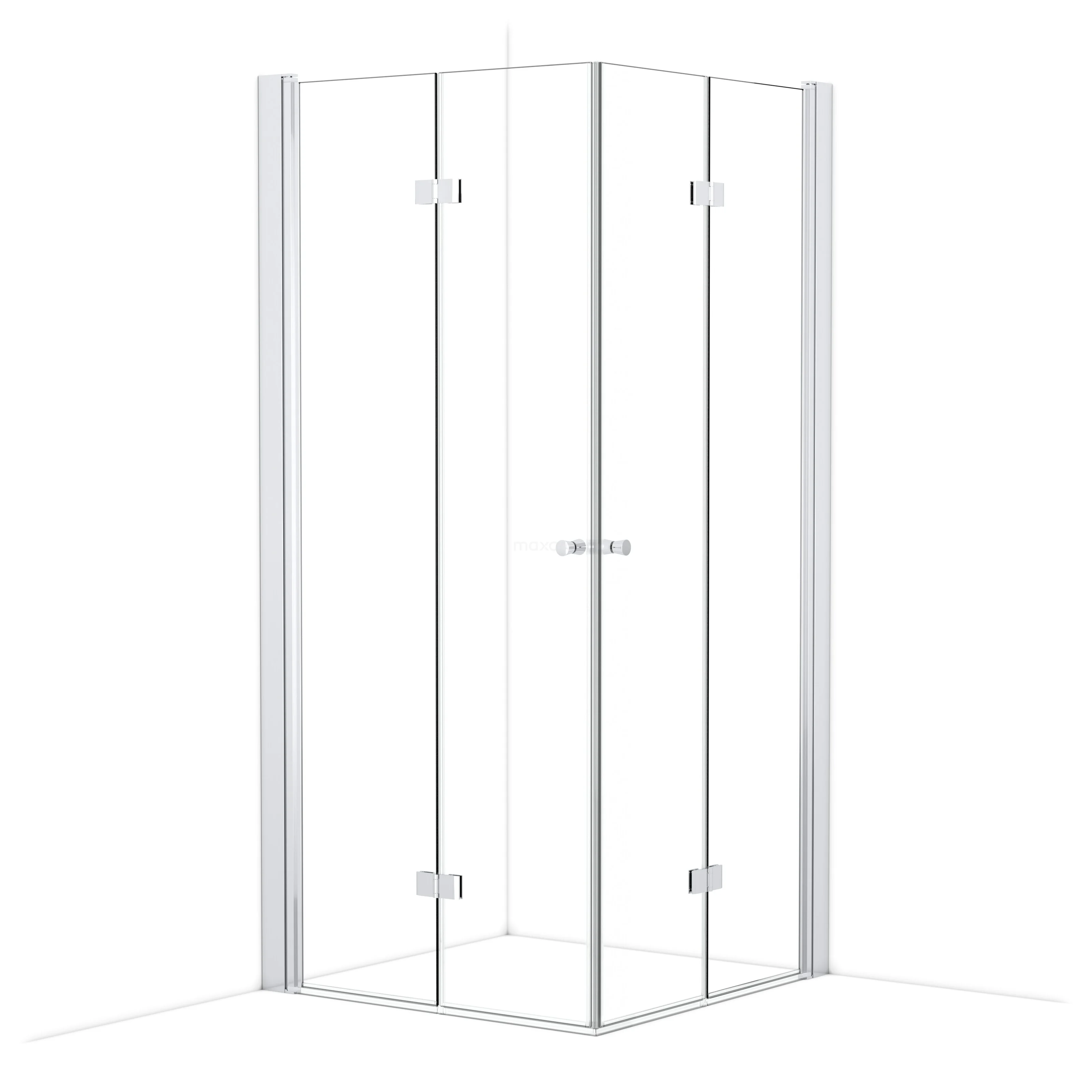 De douchecabine is uitgerust met een vouwdeur en heeft geen uitzwaai, waardoor dit exemplaar ruimtebesparend is.