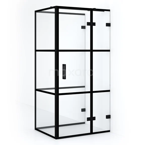 Diamond Duschkabine | 100x80 cm Matt Schwarz Drehtür Halbfreistehendes Rechteck