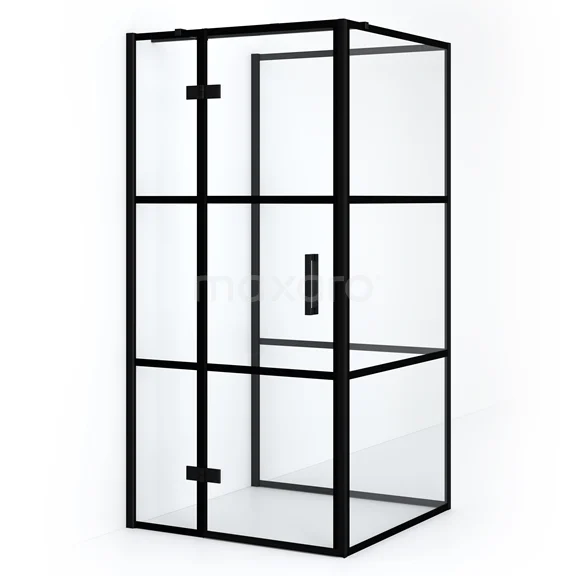 Diamond Duschkabine | 100x90 cm Matt Schwarz Drehtür Halbfreistehendes Rechteck