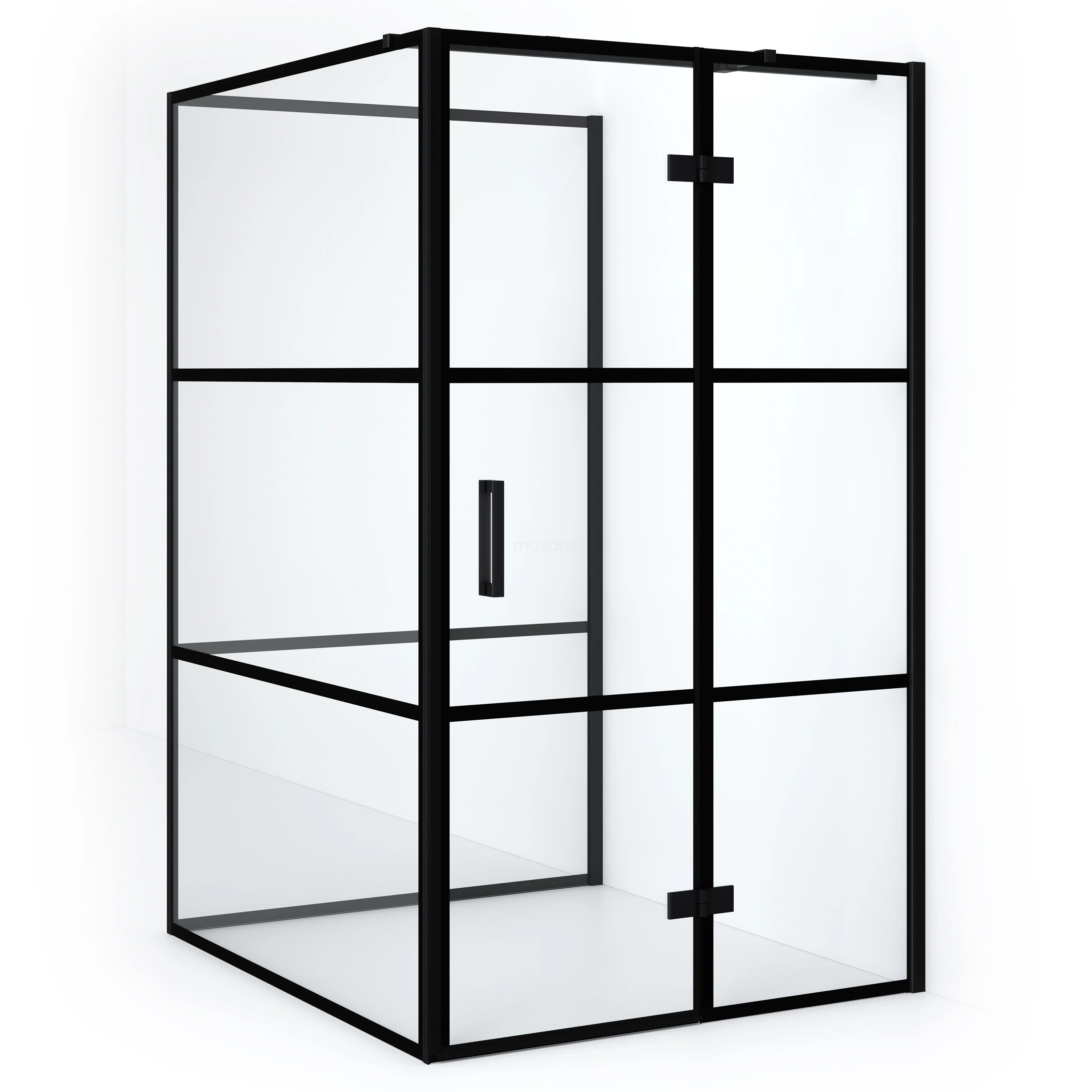 Duschkabine Halb freistehend Diamant 140x90cm 8mm klares Sicherheitsglas mit schwarzen Streifen Matt Schwarz